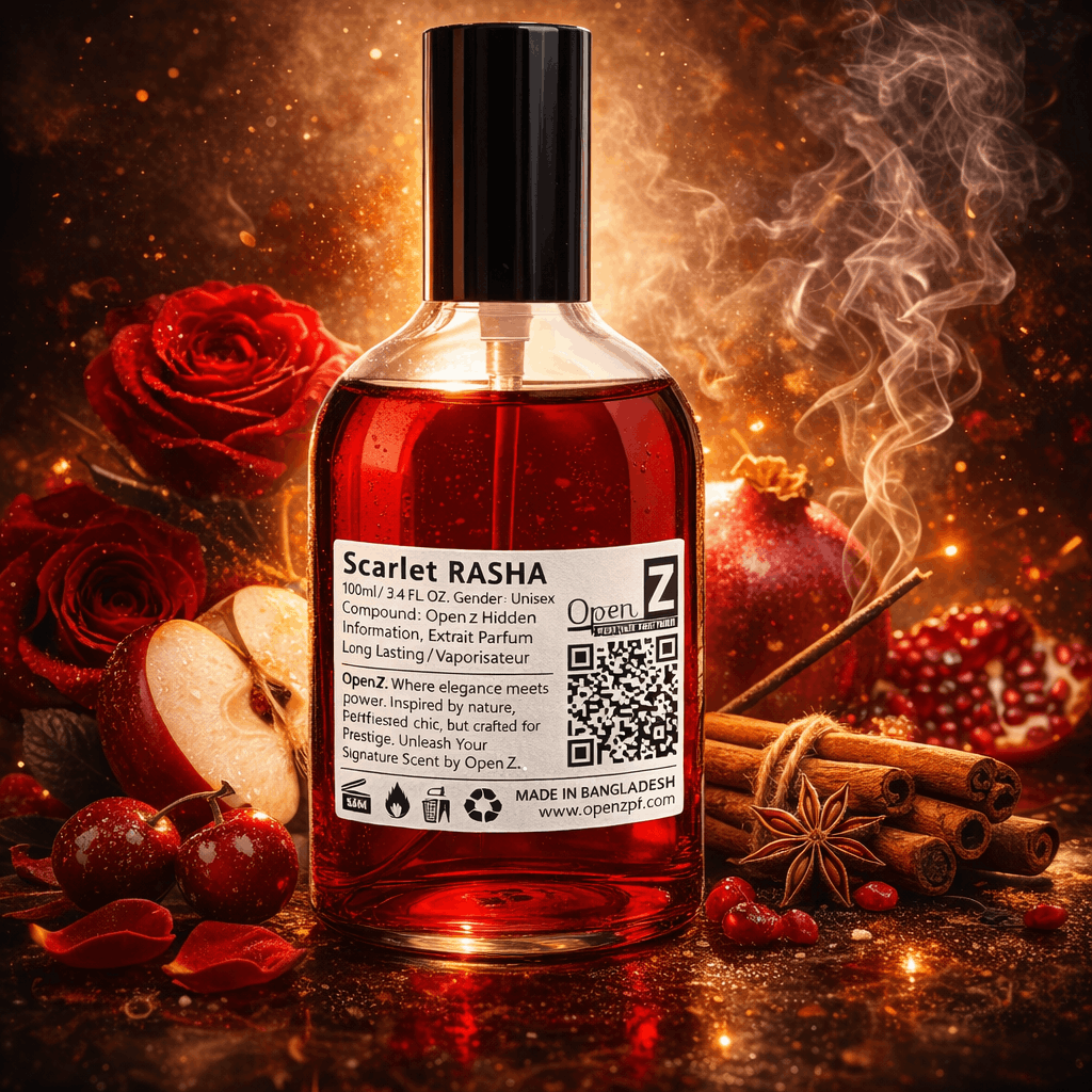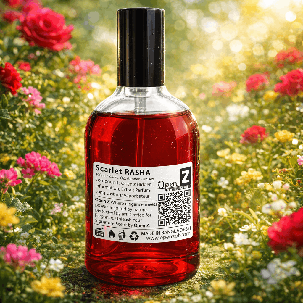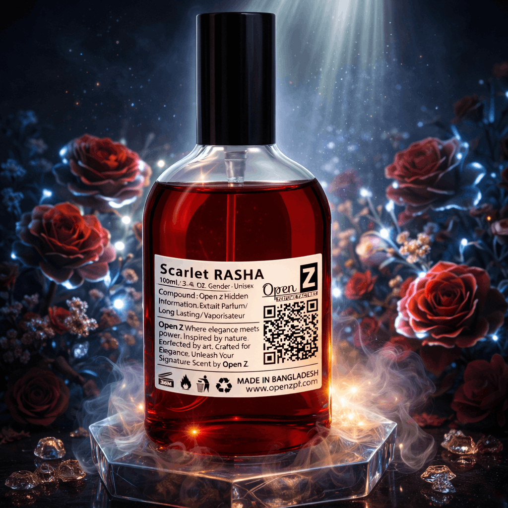 মিষ্টি (Sweet), ফ্লোরাল (Floral) এবং একটু গাঢ় (Bold) Scarlet Rasha। এটি ব্যবহার করার সাথে সাথেই আপনি একঝাঁক মিষ্টি ফলের (Sweet Berries) ঘ্রাণ পাবেন। এই ঘ্রাণটা বেশ কড়া এবং সতেজ। যারা "ফ্রুটি" বা ফলের মিষ্টি গন্ধ পছন্দ করেন, তাদের প্রথম স্প্রে বা ছোঁয়াতেই এটি মন কেড়ে নেবে।